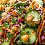 This vibrant Asian cucumber and chickpea slaw is packed with crisp veggies, protein rich chickpeas, and a bold sesame dressing. A refreshing no cook salad recipe perfect for meal prep or light lunches.