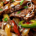 This quick and flavorful pepper steak features tender beef, sautéed peppers, onions, and garlic in a savory soy sauce—perfect over rice for a satisfying dinner.