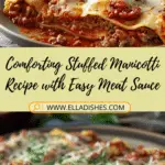 Comforting Stuffed Manicotti Recipe with Easy Meat Sauce features tender pasta shells filled with creamy ricotta and topped with rich homemade meat sauce. This classic baked Italian dinner is hearty, cheesy, and perfect for family meals.