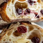 Stuff Bread: Gently open the cuts and fill with brie cubes, dried cranberries, and chopped rosemary, distributing evenly.