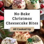 These no-bake Christmas cheesecake bites are creamy, festive, and easy to make with graham cracker crumbs, white chocolate, and holiday sprinkles. Perfect for gifting or parties!