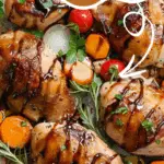 Bake: Roast in the oven for 30–35 minutes, or until the chicken is cooked through (internal temp 165°F) and vegetables are fork-tender. If the chicken is done before the vegetables, remove it and continue roasting the veggies until tender.