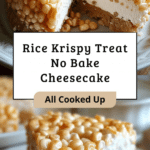 A creamy no bake cheesecake layered over a chewy Rice Krispy treat crust. This easy dessert is rich, fluffy, and perfect for parties, holidays, or make-ahead treats.