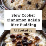 Creamy slow cooker cinnamon raisin rice pudding made with whole milk, warm cinnamon, and tender short grain rice. This cozy homemade dessert is rich, comforting, and perfect for chilly nights.