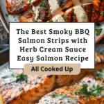 The best smoky BBQ salmon strips seasoned with paprika, garlic, and brown sugar, grilled to perfection and paired with a cool herb cream sauce. An easy salmon recipe perfect for quick dinners.