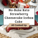 Looking for a refreshing no-bake dessert? This Keto Strawberry Cheesecake Icebox Cake is layered with almond flour crust, creamy cheesecake, and fresh strawberries—only 4g net carbs per slice!